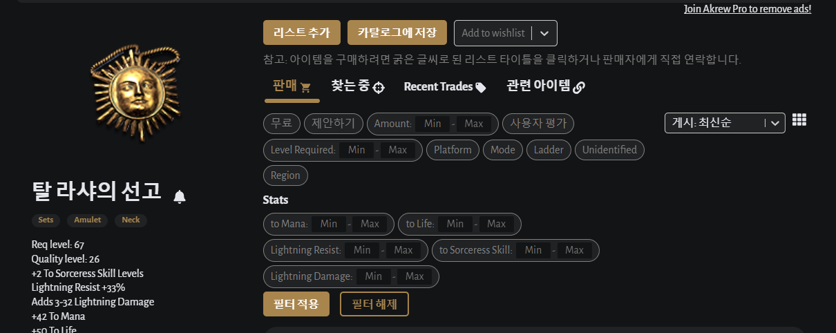 밑에는 가격인데 룬이나 아이템들을 지정할 수 있다.