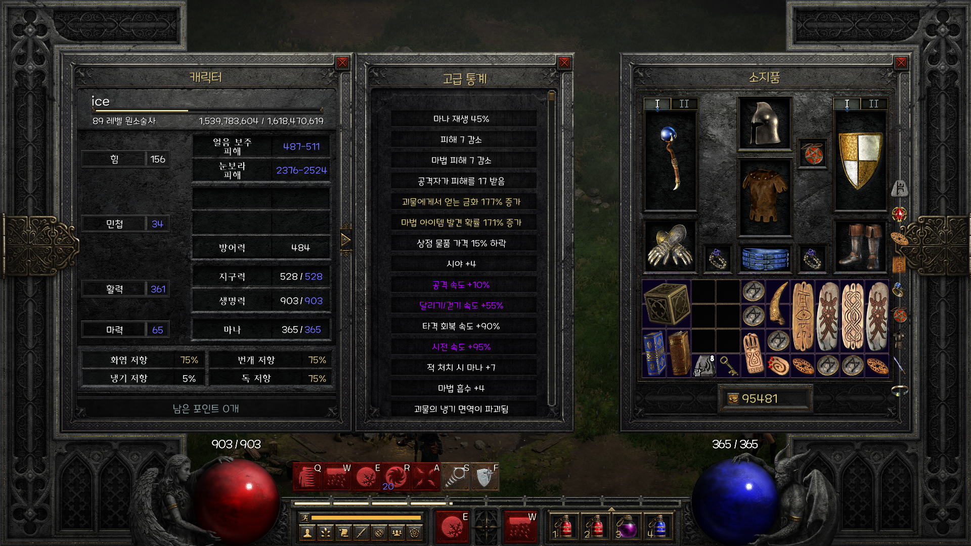 어차피 어느정도 세팅이 되지 않는 이상 시전 속도 105는 좀 힘들다고 생각한다. 마나도 딸리고