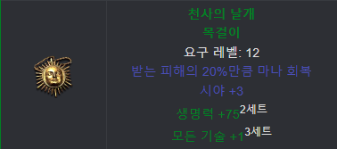초반에 짜증나는 빙결을 방지해줌과 동시에 저항과 공속까지 챙겨줘서 물리캐는 있으면 반드시 써야하고