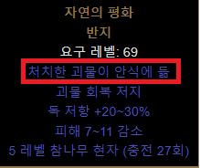 처치한 괴물이 안식에 듦인데 이게 내가 적을 죽여도 시체를 만들지 않아 시폭을 못하게 막는다.